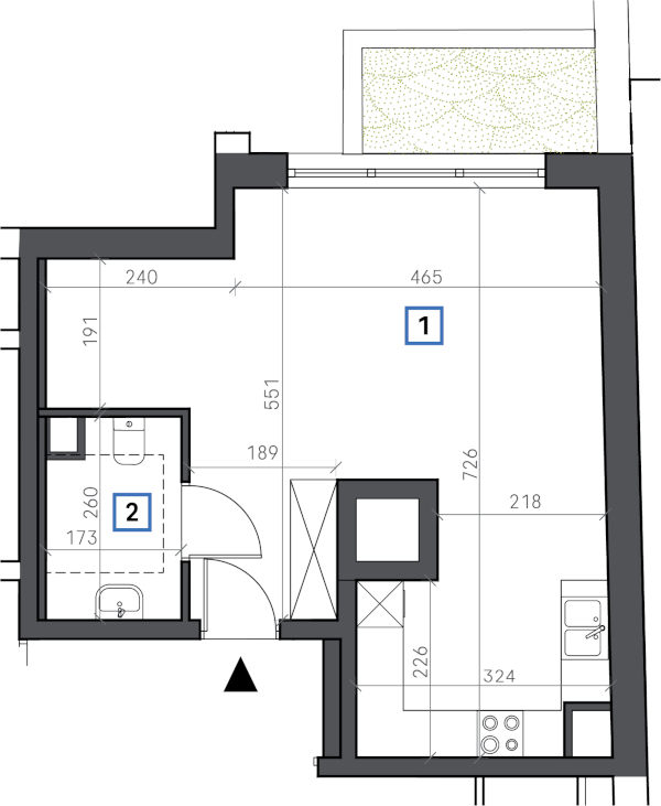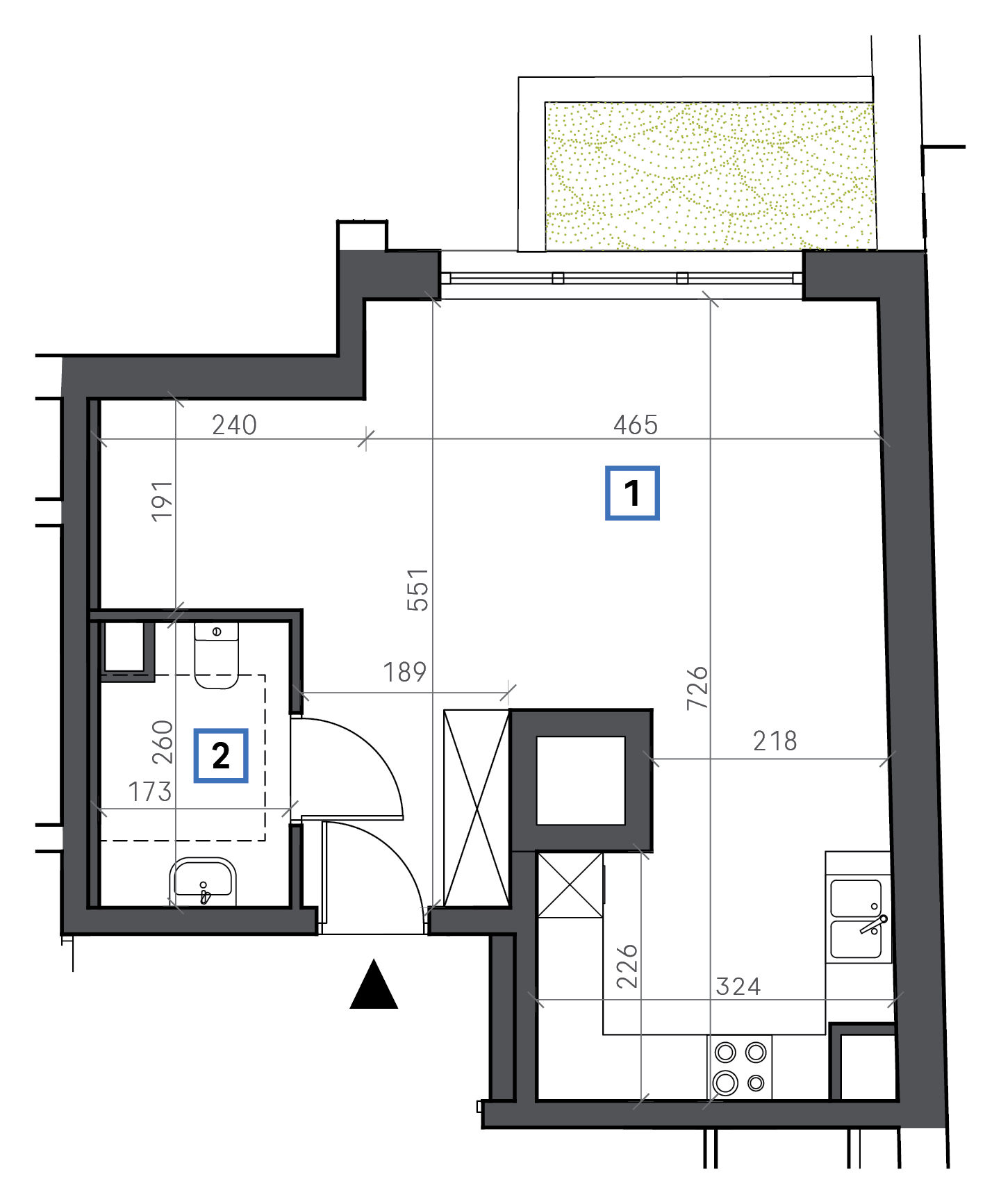 Wielkość pomieszczeń i całkowita powierzchnia lokalu może ulec zmianie, nie uwzględnia powierzchni balkonu.