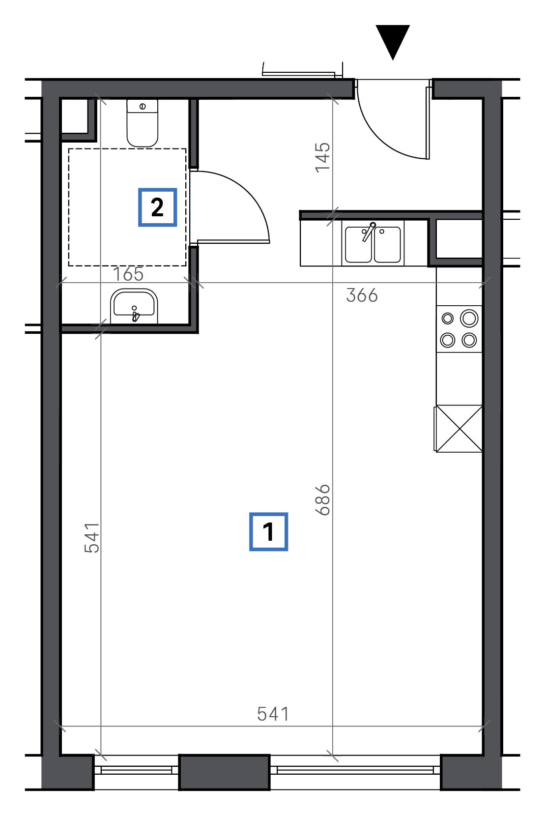 Wielkość pomieszczeń i całkowita powierzchnia lokalu może ulec zmianie, nie uwzględnia powierzchni balkonu.