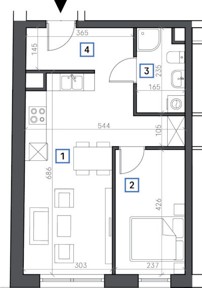 Wielkość pomieszczeń i całkowita powierzchnia lokalu może ulec zmianie, nie uwzględnia powierzchni balkonu.