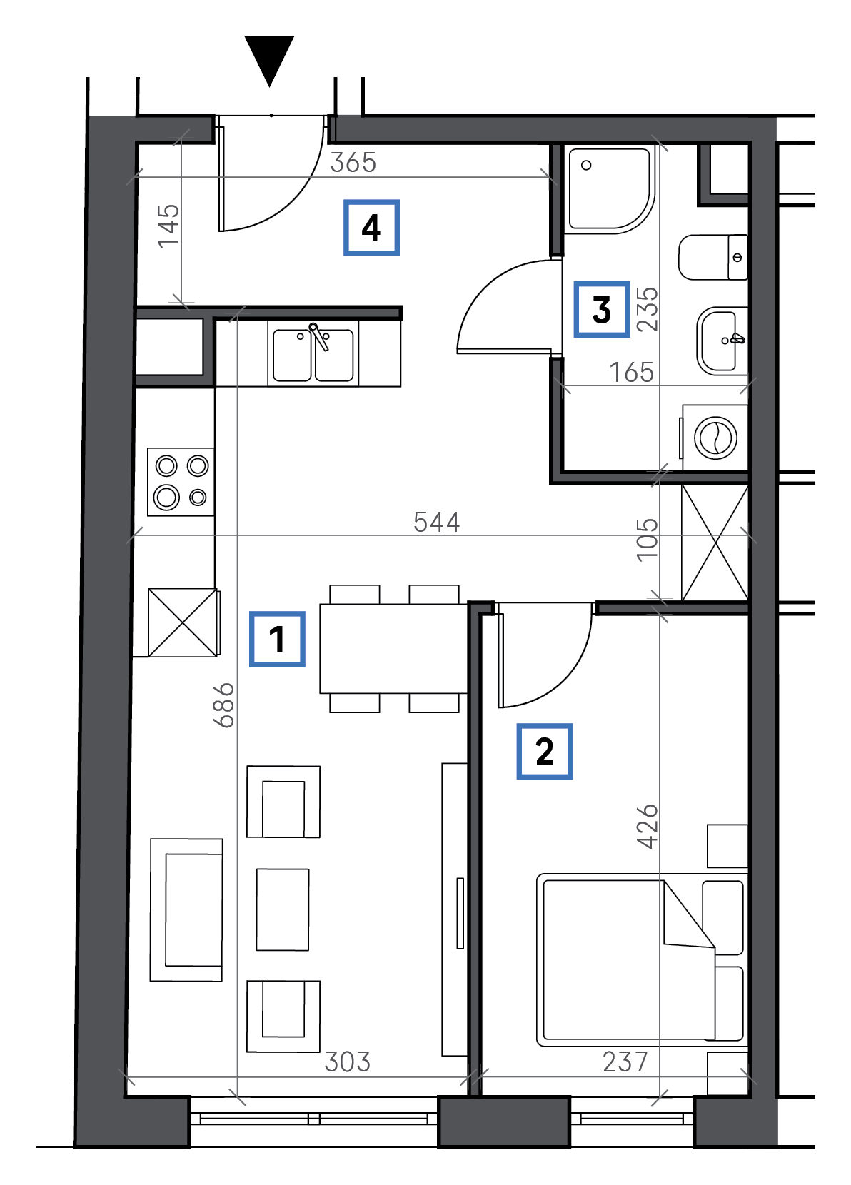 Wielkość pomieszczeń i całkowita powierzchnia lokalu może ulec zmianie, nie uwzględnia powierzchni balkonu.