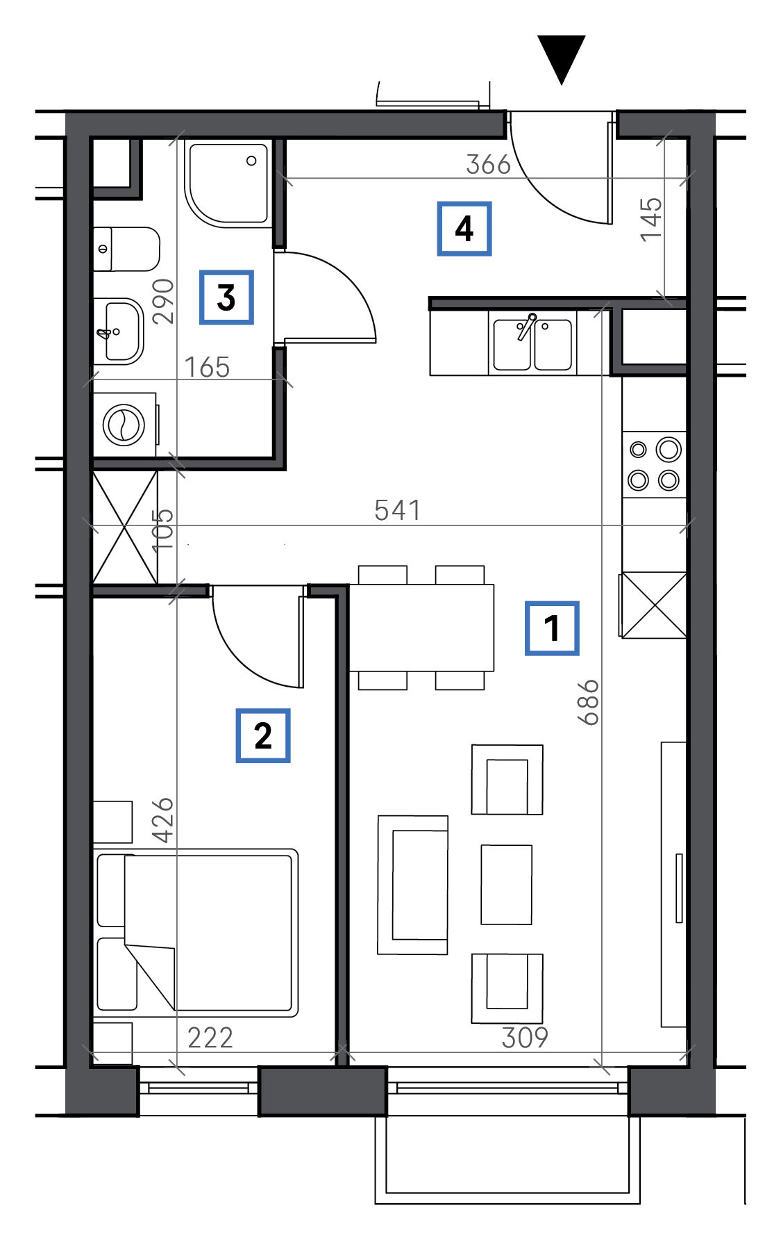Wielkość pomieszczeń i całkowita powierzchnia lokalu może ulec zmianie, nie uwzględnia powierzchni balkonu.